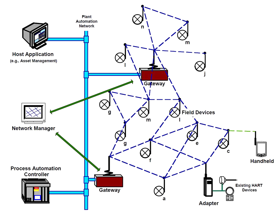 Figure 3: WirelessHART network topology. Courtesy: ISA100 Wireless Compliance Institute.